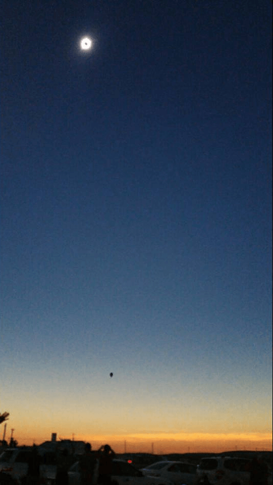 As you see the flash, a “last gasp” of the sun’s light as the moon completely covers the sun, you see the ghostly white corona appear as the black disc is silhouetted in the middle. Some of the brightest stars and planets can also appear during totality, but they’re not the focus! The sky above is a dark shade of blue, while near the horizon you can see a familiar red-orange twilight glow in all directions. The corona appears as some of the purest light you will ever see, and it adds to the eeriness of the experience! Then you will see another flash, the corona fades away, and the sun is coming back!