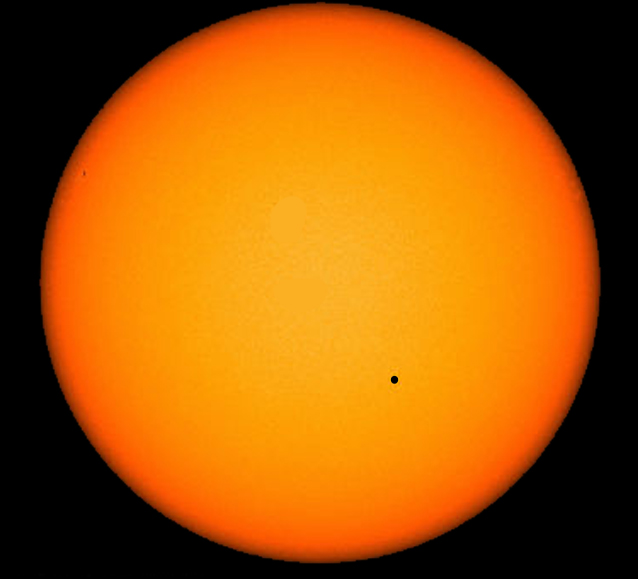 Mercury will appear as a tiny black dot, and if there are any sunspots visible, they may actually appear bigger than Mercury! While the view of the entire Sun is nice, you will need to zoom in to resolve Mercury into a circular disc with your eyes.