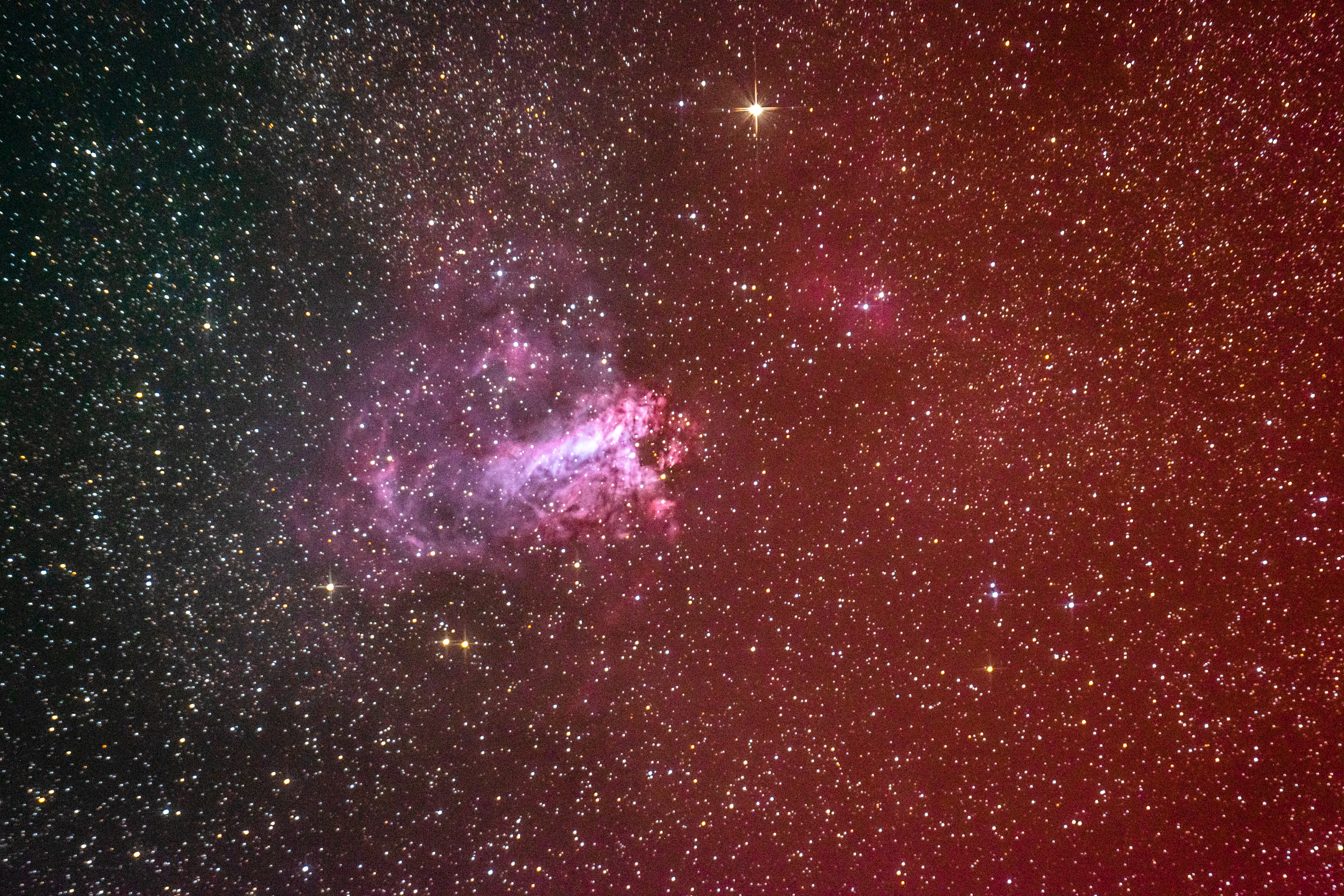 Finally, I tried working on M17- the Omega Nebula. By this time, the camera sensor was probably too warm from it being on (probably because of me constantly using the live view for aligning bright stars in the telescope, and the noise levels showed. When I switched to a better battery, a mass of high altitude clouds began to cover up that section of the sky, leading me to move towards Cygnus where it was much clearer. I also wanted to get M11, but when I tried finding a guide star for it, the view showed it was still too cloudy in front of it.