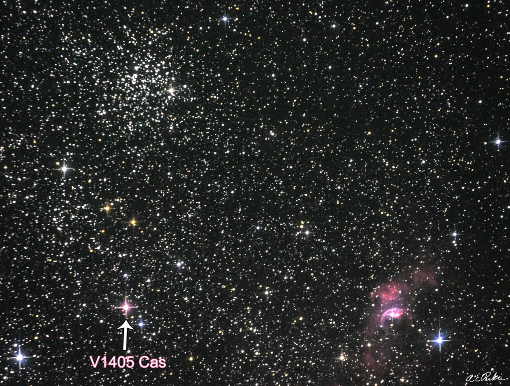 V1405 Cas with M52 (top) and Caldwell 11 (right)