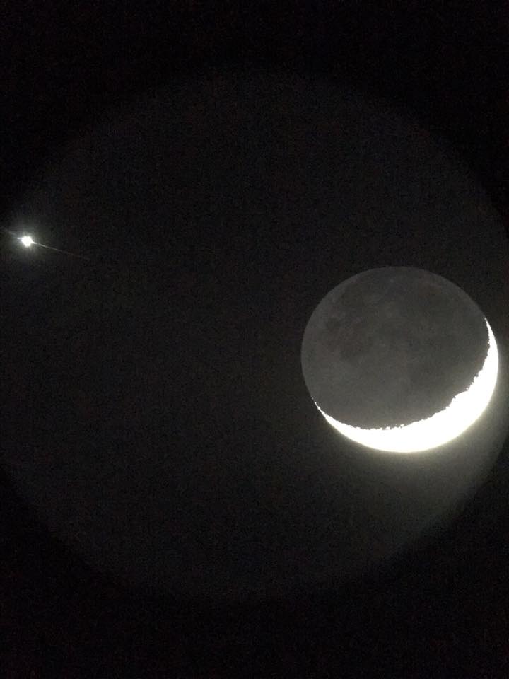 I do not quite remember when this conjunction event happened in 2018 (as it’s not the only time I’ve seen a crescent moon meet Venus in the sky), but hey, the two were close enough to be seen through a wide angle eyepiece through my 8″ telescope!