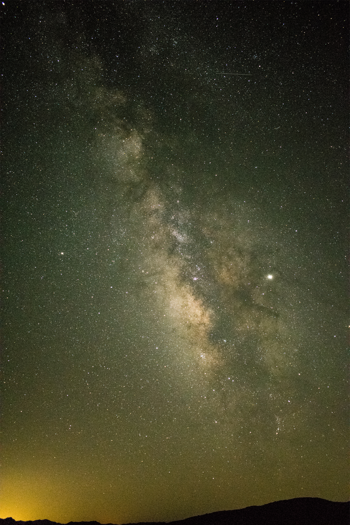 Taken at Amboy Crater, CA, this one was more of a “surprise” shot, and wasn’t planned. I just happened to notice the thin waxing crescent moon about to set, quickly got the 300mm telephoto lens attached to the Nikon d5300 on the tripod, and did a quick 3 second shot. It turned out to be better than any telescopic shot I took that night. This one still remains one of my best shots… ever!