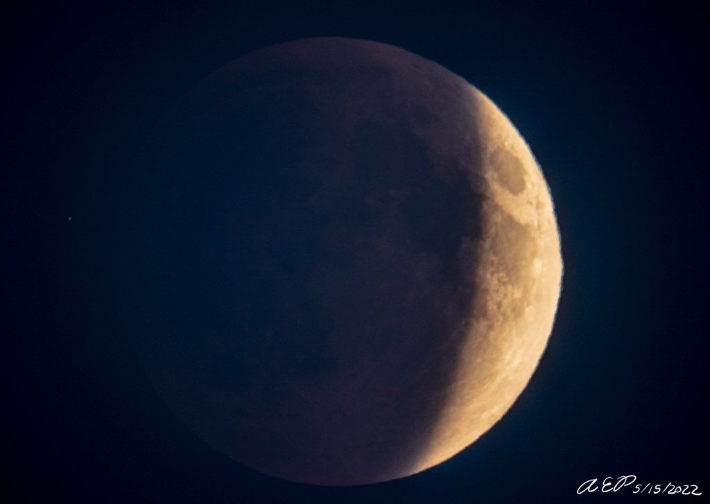 This was also the first time since the Observatory opened to the public in June 2021 that we would have a Lunar Eclipse during normal business hours with the public attending. And of course despite the efforts of numerous media outlets, I encountered many visitors who were unaware a lunar eclipse was about be visible at sundown. I’m sure there were plenty of satisfied viewers whenever any of them looked through the telescopes we had set up on the front lawn.