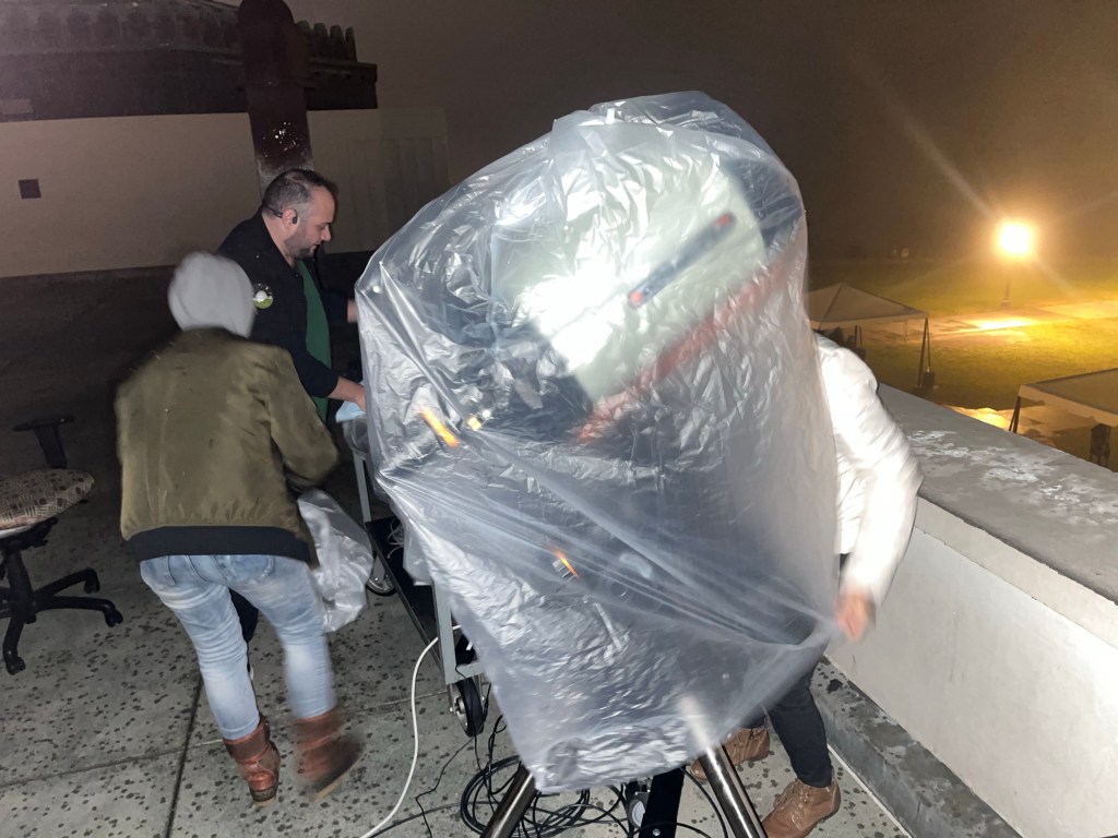 The decision was made to end the broadcast just as I could see on the radar that rain was touching down just south of the observatory. As soon as the broadcast was cut, we could start feeling rain drops, and we all had to cover up the electronics and get off the roof as quickly as possible.