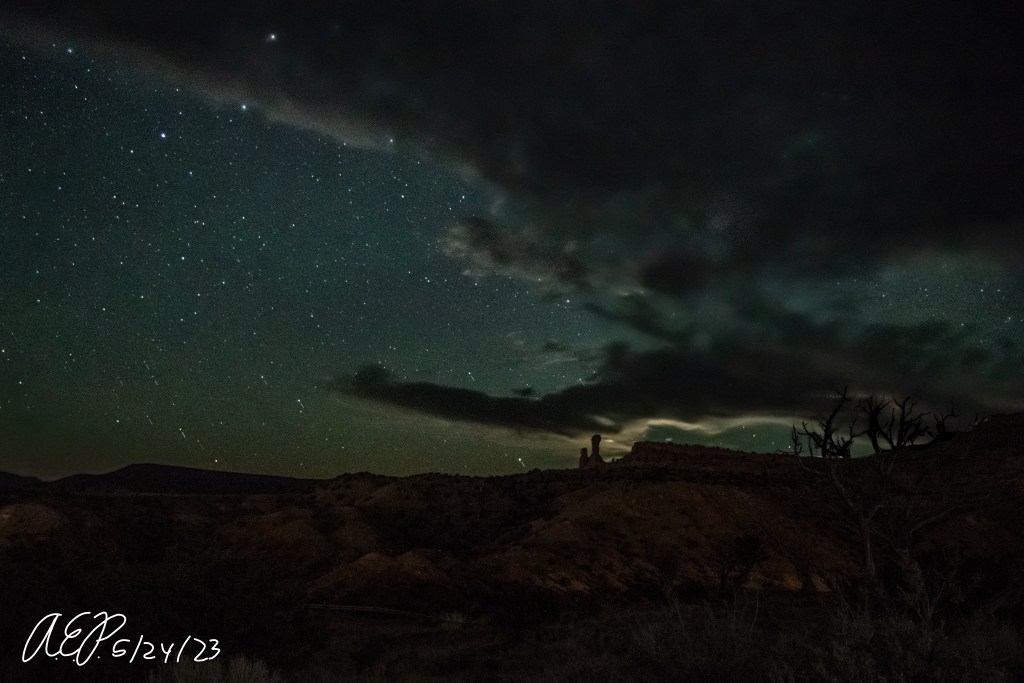 Beautiful red rock cliffs, high desert/plateau landscape, nice dark skies with no light pollution… Toto, I don’t think we’re in the Mojave Desert anymore…
