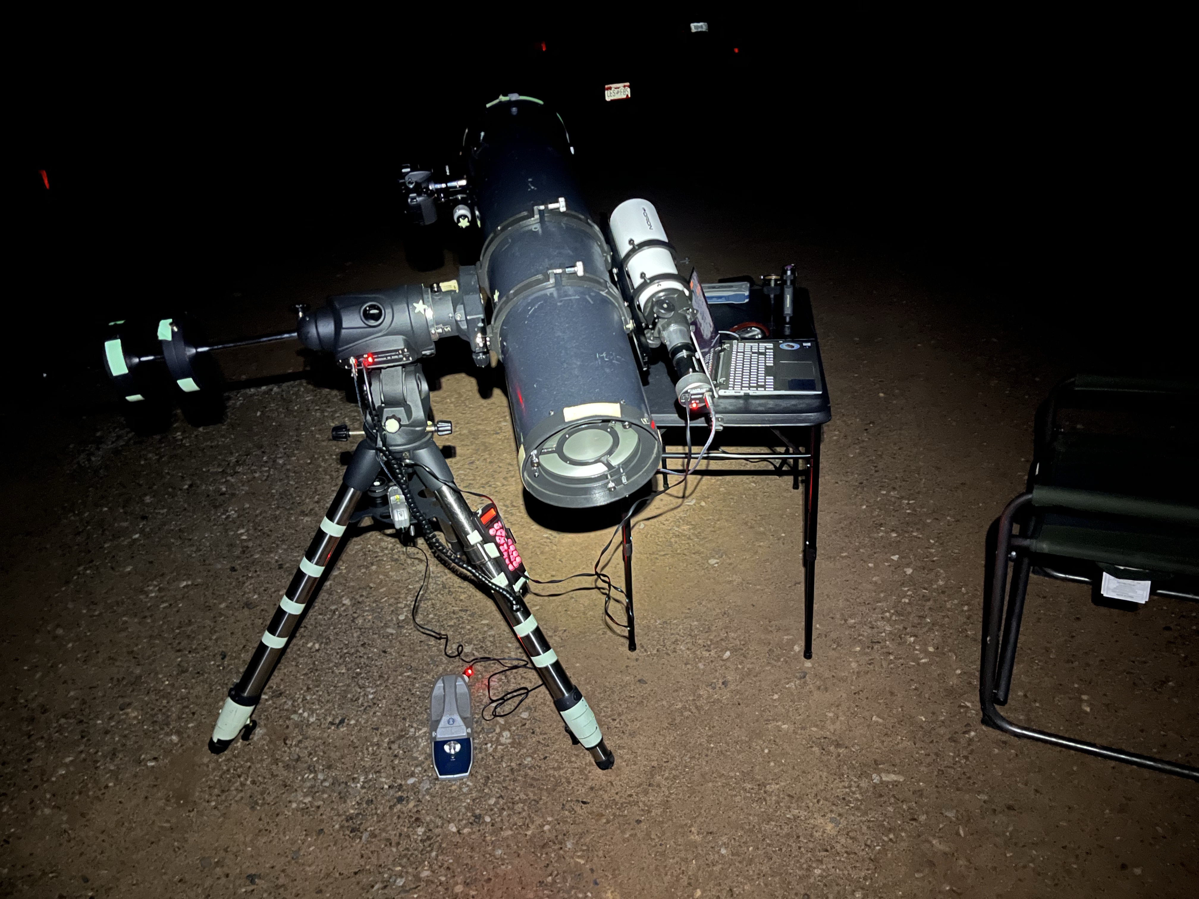 This was definitely a Bortle 2 sky. There wasn’t too much of a glow from Santa Fe and Albuquerque in the distance, but it was still there and showed up in exposures. The sky was also humid, and not as transparent as one would wish. But I could definitely spot Omega Centauri with the naked eye even though it was low above the horizon and subject to airglow. What was really neat about this sky on the other hand was that any clouds would look like black holes or black masses in the sky.